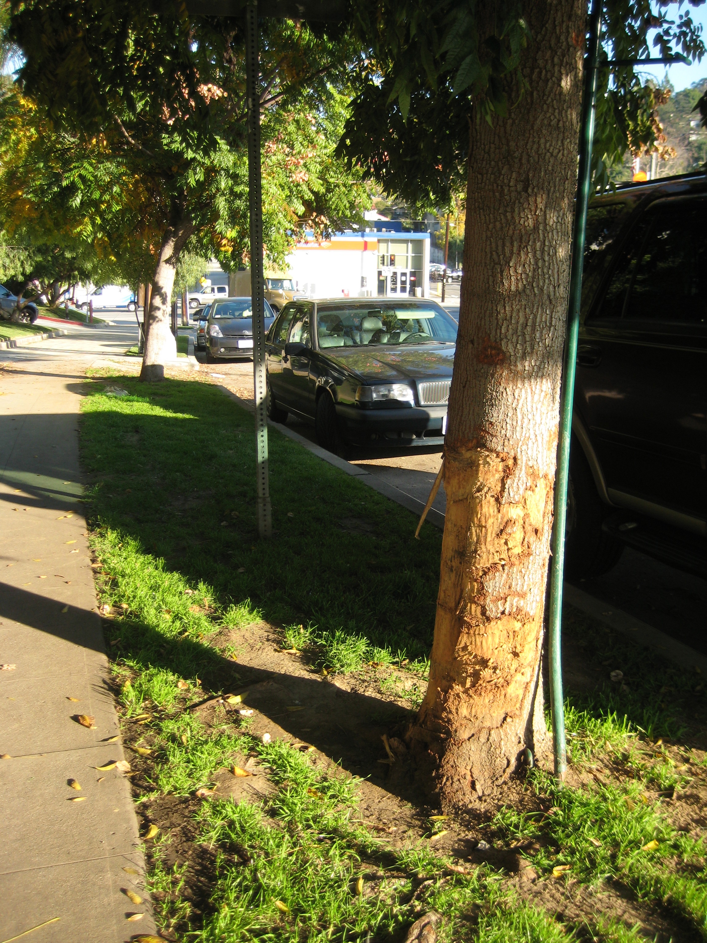 Somehow I missed seeing the car that careened onto a neighbor’s sidewalk, scoured off a patch of stucco retaining wall, bounced off tree, then came to rest—judging by the skid marks—somewhere down the block.