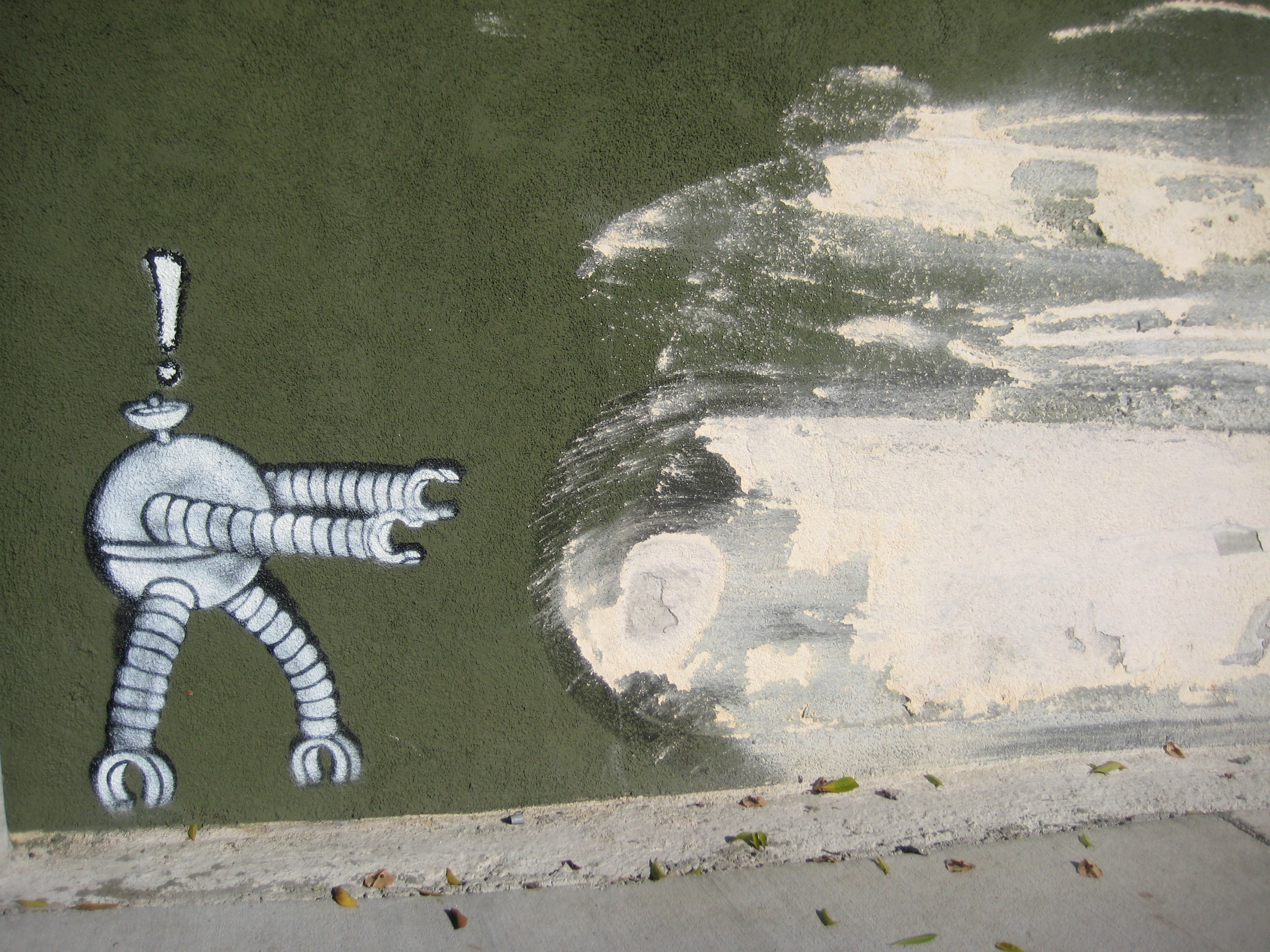 Someone recently added a graffiti side note to the damaged wall. Whether commentary or decoration I can’t tell, but it adds a certain je ne sais quoi.