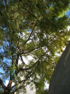 These are the palm trees that I see from my second-story study. They are my anemometer: before leaving the house, I look at the fronds to determine how strong the wind is, using my own version of the Beaufort scale.