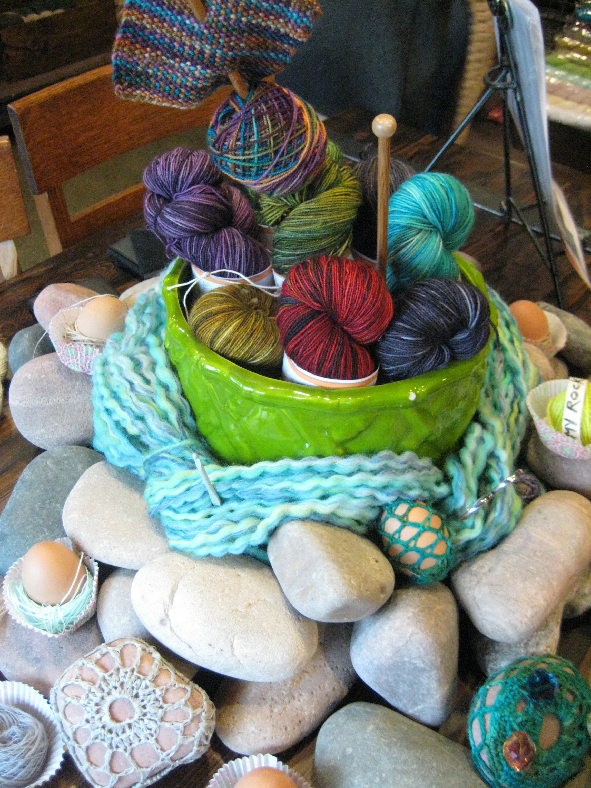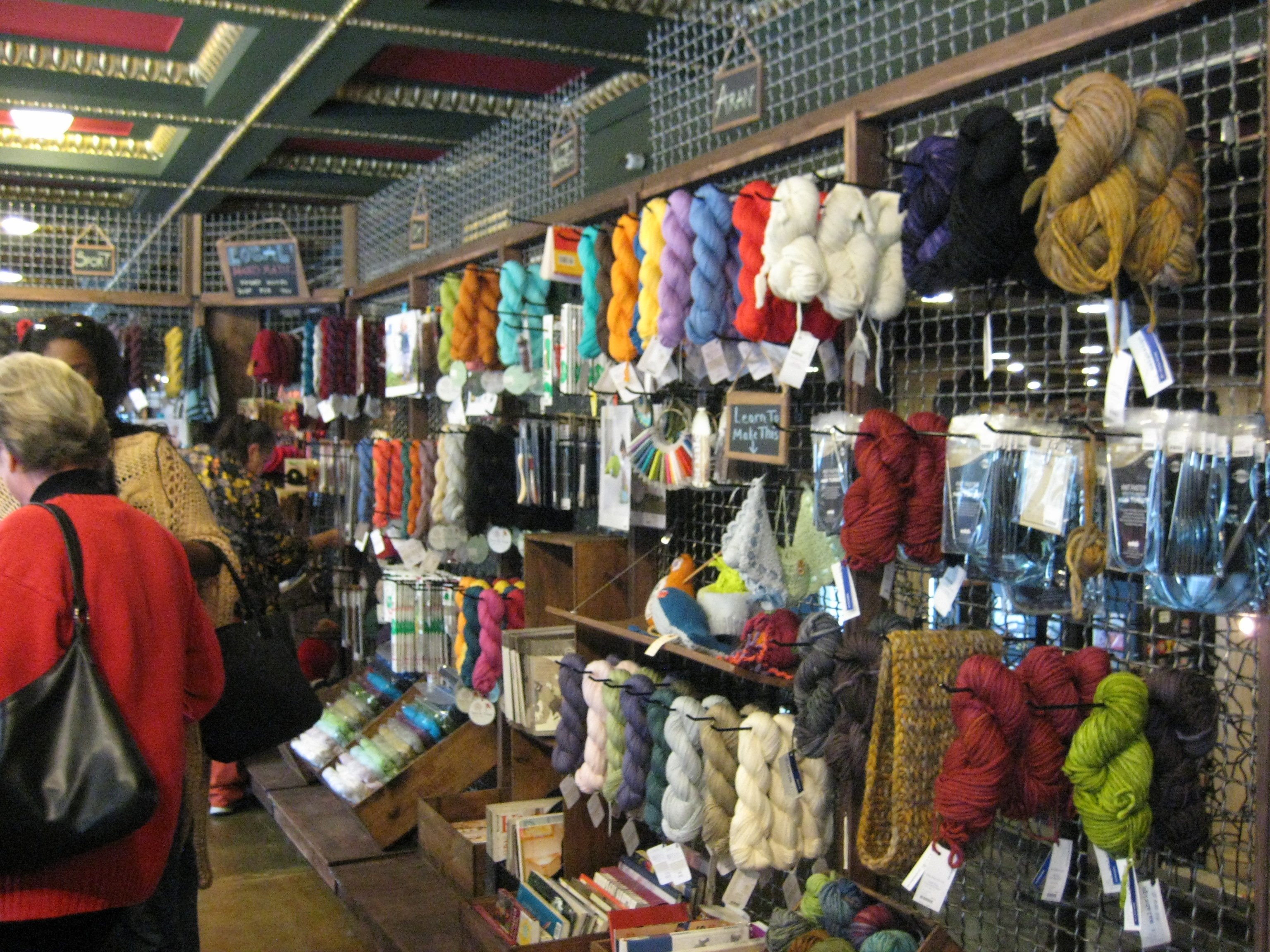 Which gets me wondering: the LYS phenomenon began about the same time that women’s bookstores were taking a nosedive. Do you suppose there’s a correlation? Feminism’s fire transmuted via worsted wool and #7 needles into the DIY (do it yourself) movement? Much less overtly political (“the personal is the political” notwithstanding), but resistance to stultifying norms nonetheless. DIY hasn’t meant simply replicating Martha Stewart place settings (or cupcake decorations or whatever); it’s renewed appreciation for handcrafted items and creativity, and represents a turn away from the mass produced “stuff” that crowds our lives.