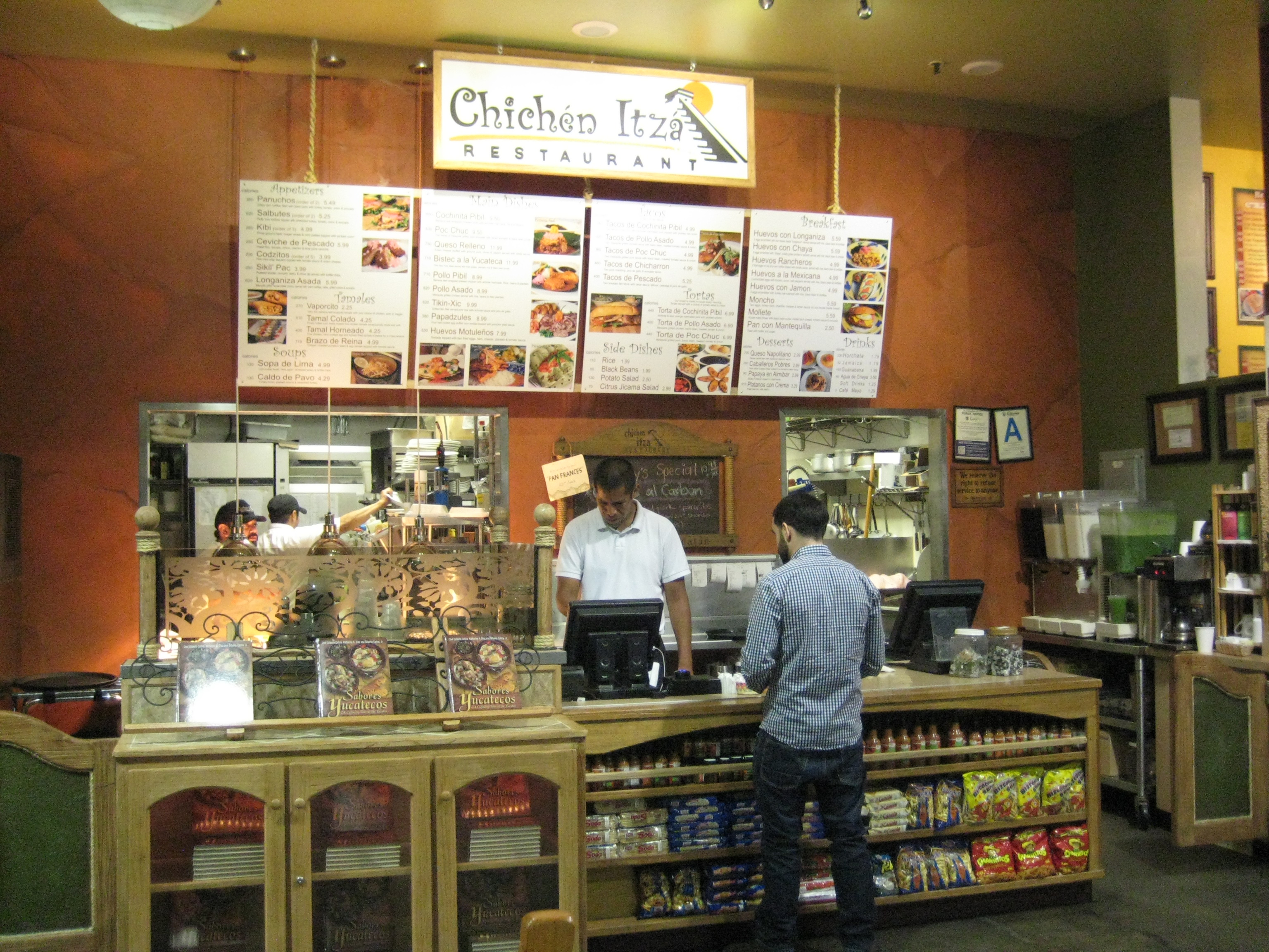 But you don’t need to know all this to enjoy the wonderful food at Chichen Itza, the mercado’s Yucatan restaurant where we ate recently. My mouth waters as I remember the pollo pibil, chicken marinated in achiote, sour orange juice and spices, then cooked in banana leaves.