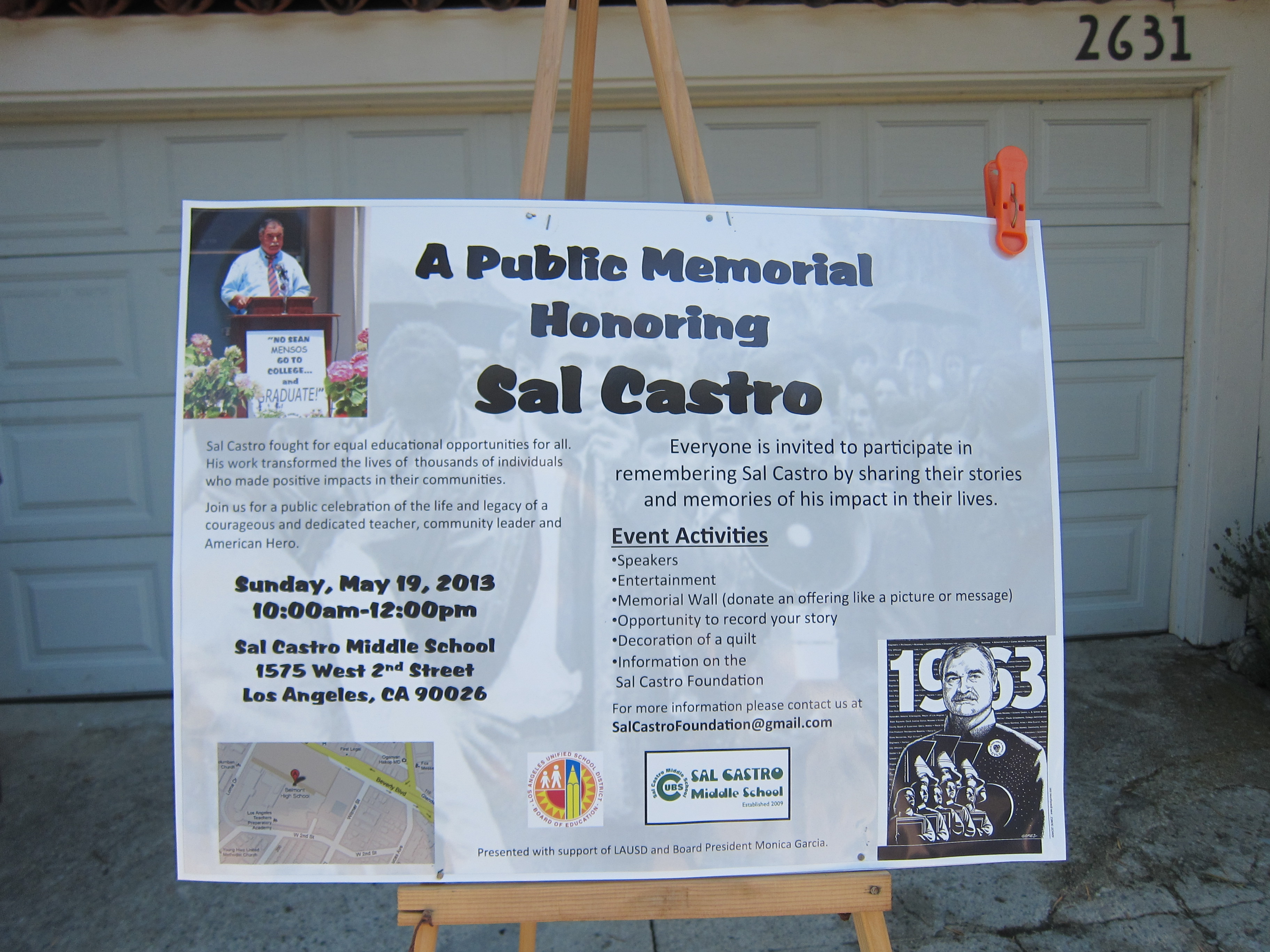 I picked up the LA Times one day in April and read the lengthy obituary of a fiery Chicano educator of the 1960s named Sal Castro. Looking at the photo, I realized Sal was a neighbor, the beefy guy who worked in an office in his garage and whom I saw, when the door was up, on my neighborhood walks. The guy with license plates reading ANIMO (which means “soul” in Spanish, and could also mean “courage” and “encourage”). The heavy-browed guy who never said hello or smiled.
