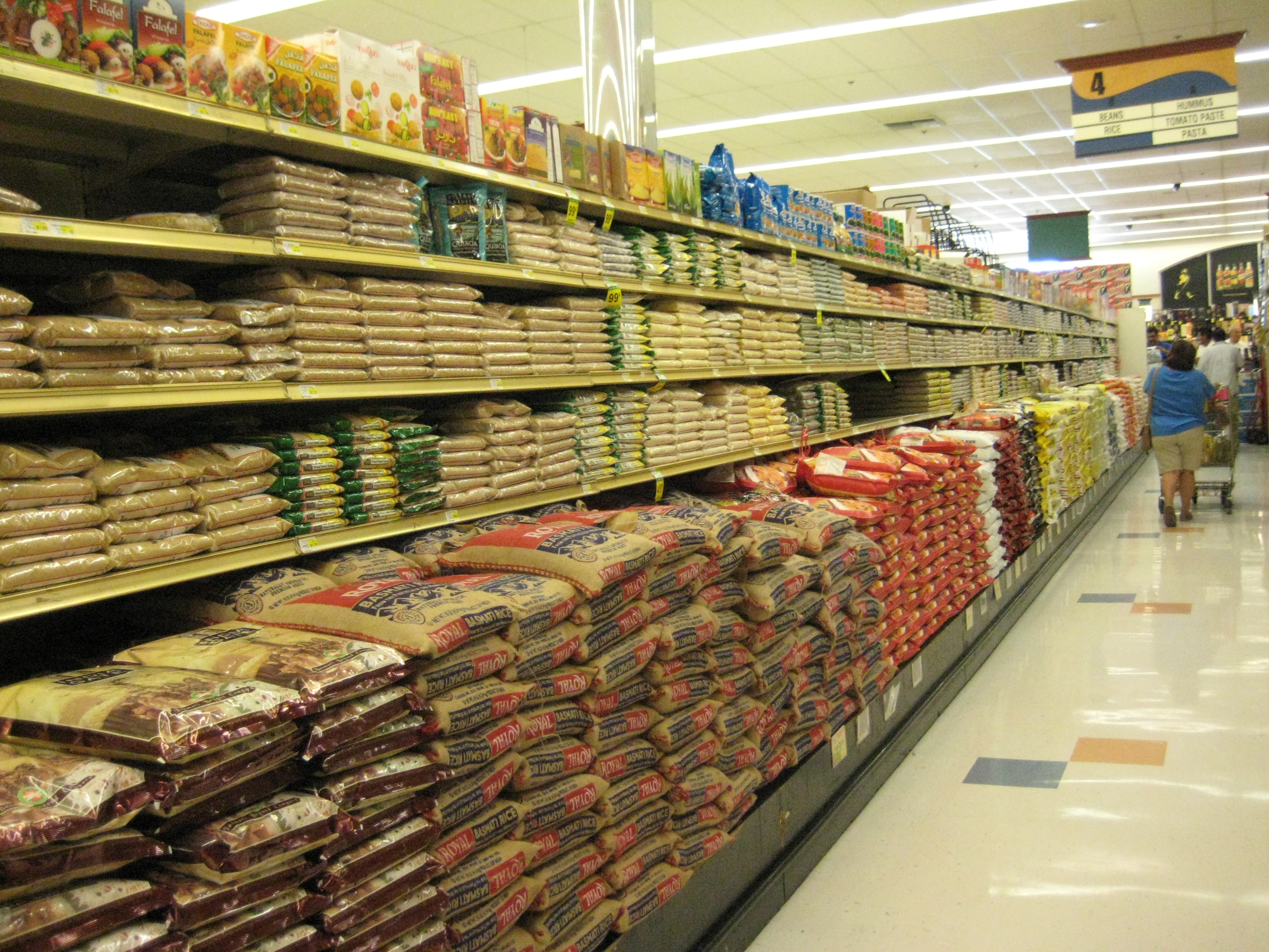 And then there’s rice: 10 and 25 pound bags of the stuff stretch for entire aisle. Ditto bags of beans, peas and lentils.