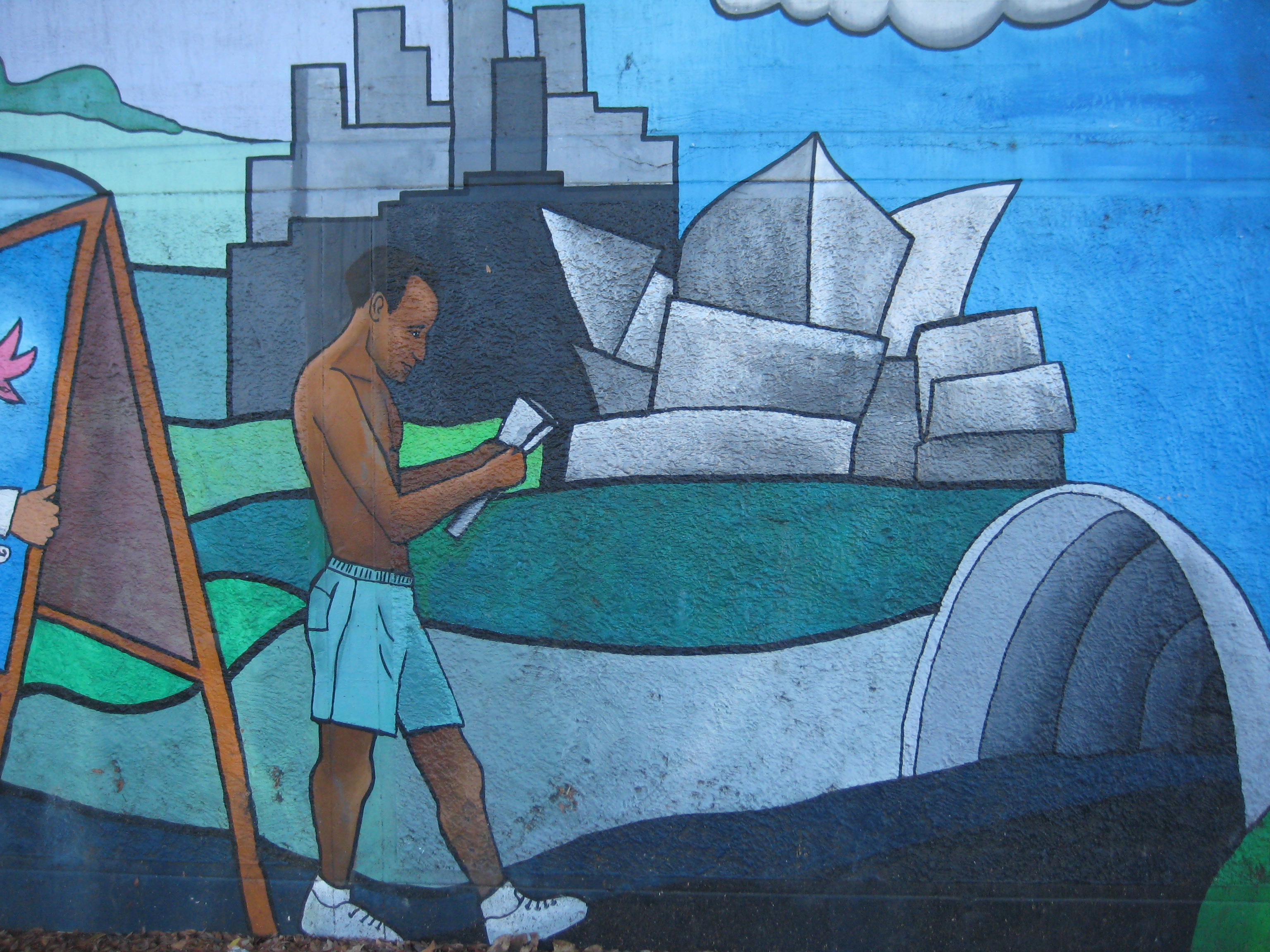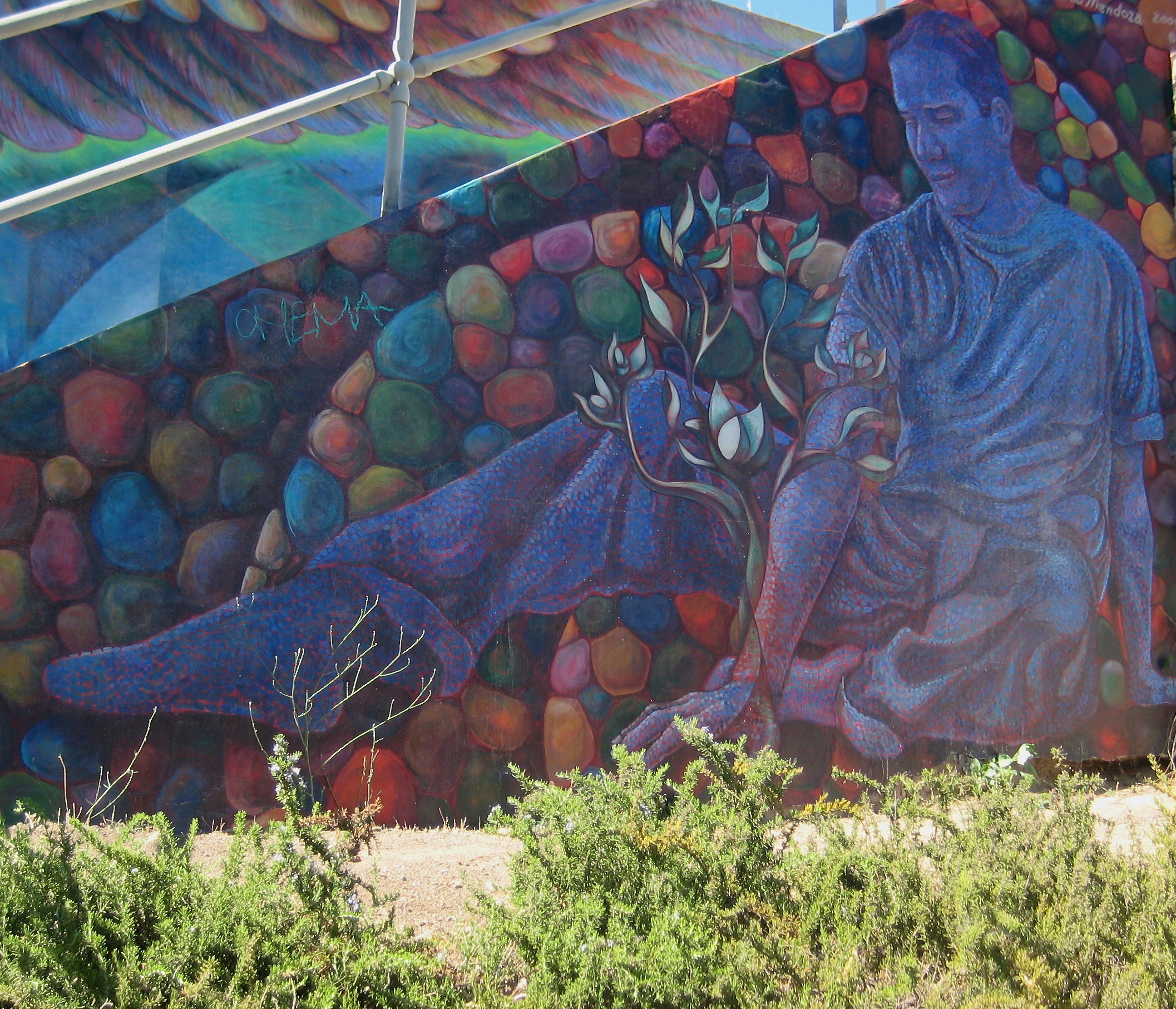 The man lives on, however, in two Silverlake murals. The students at Micheltorena School included him in a mural at the far end of their school yard.